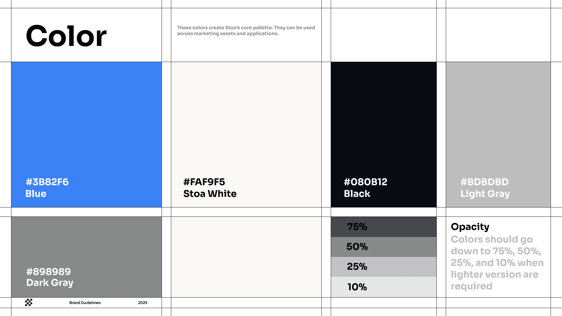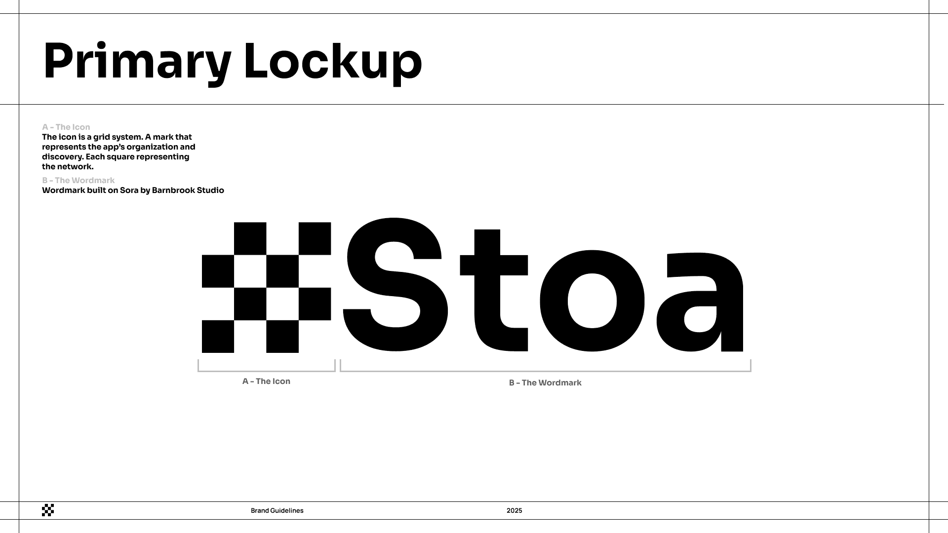 The word Stoa in ancient greek means a covered walkway, primarily for commerce and socializing. Stoa's creative direction was grounded in these spaces. Buildings nearby each other - how we live in a grid based city here in Los Angeles. This is where the logo was born.